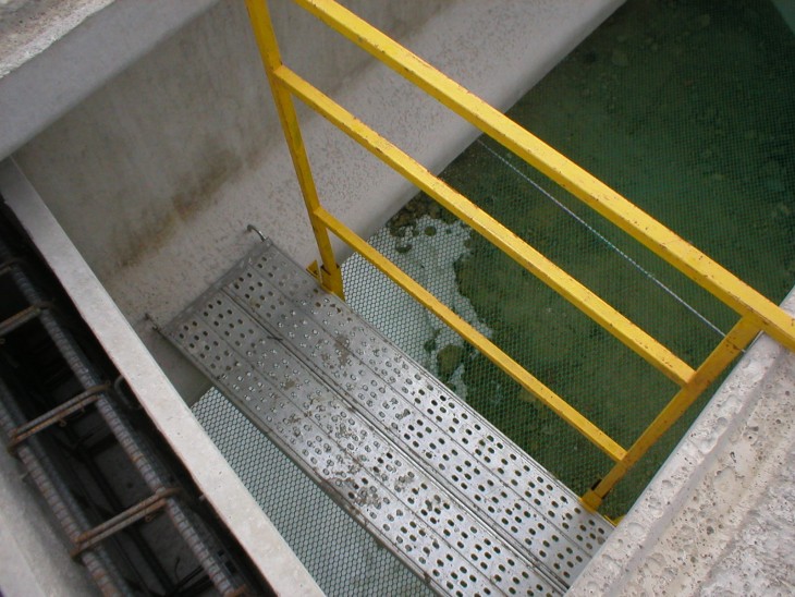 우수사진 : 교량 거더 사이 작업발판과 안전난간대