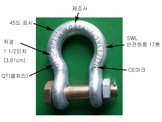 샤클 사용 시 각도는 120도가 작업한계 각도 입니다.