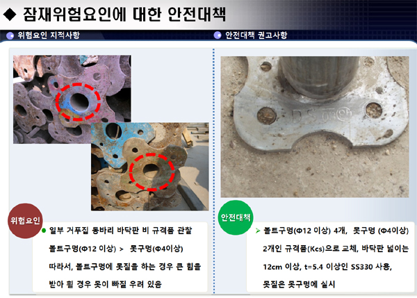 거푸집동바리 바닥판 비 규격품 사용 : 2쪽으로 구성되어 있습니다.
