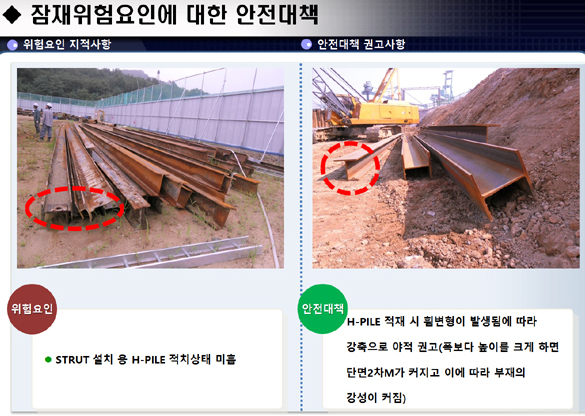 STRUT 설치 용 H-PILE 적치상태 미흡 : 2쪽으로 구성되어 있습니다.