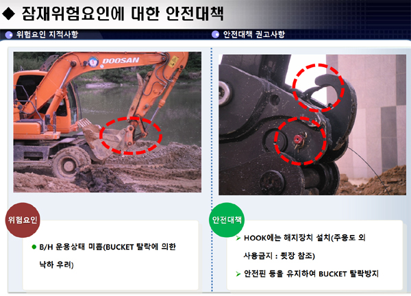 OPL : 굴삭기(Back hoe) 운용 시 BUCKET 낙하 우려
