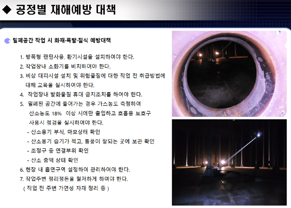 밀폐공간 작업 시 화재·폭발·질식 예방대책