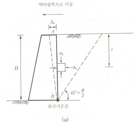 즉, 지반의 주동경사면이 수평면으로부터 45°+(Φ/2)이므로 굴착저면으로부터 주동경사면을 측정하여