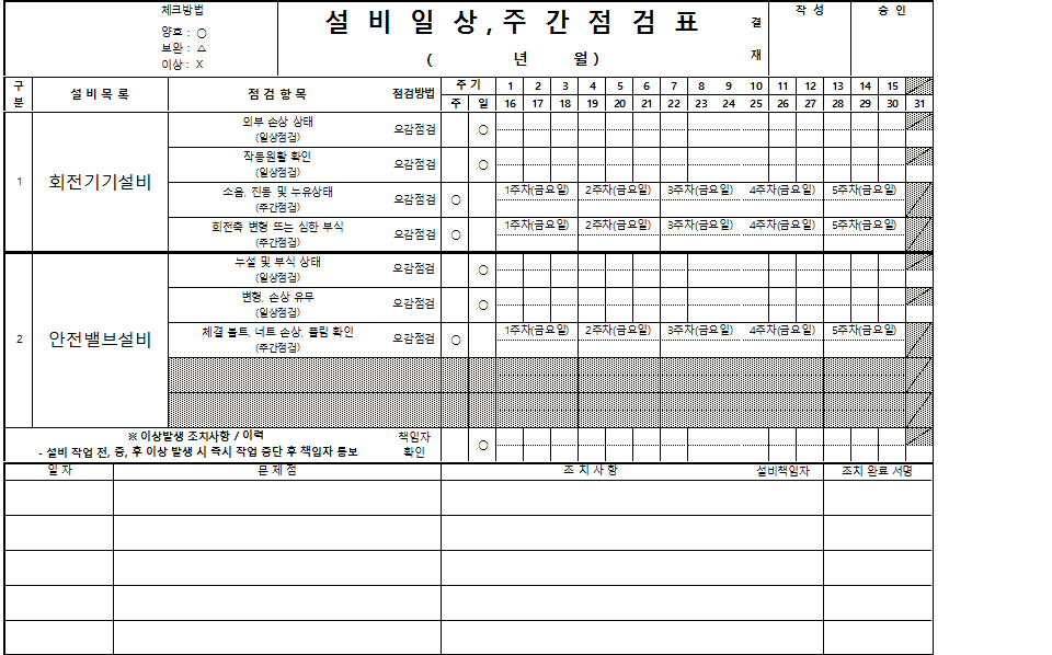 * PSM(공정안전보고서)상에 일일,주간점검을 점검표로 기록한다로 두루뭉술하게 되어있어